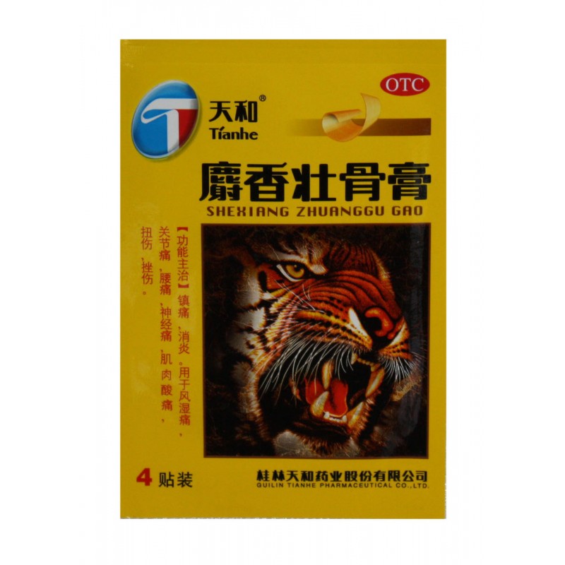 Состав: мускус, кость леопарда, клубни борца (аконит Кузнецова), корни дудника китайского, трава санчи, ментол, борнеол, корневище галанга, хондроитин сульфат, древесная камфара и др. Всего 17 компонентов.