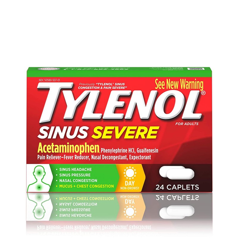 Tylenol Sinus Severe Caplets Жаропонижающее средство при гриппе и простуде 24 капсулы