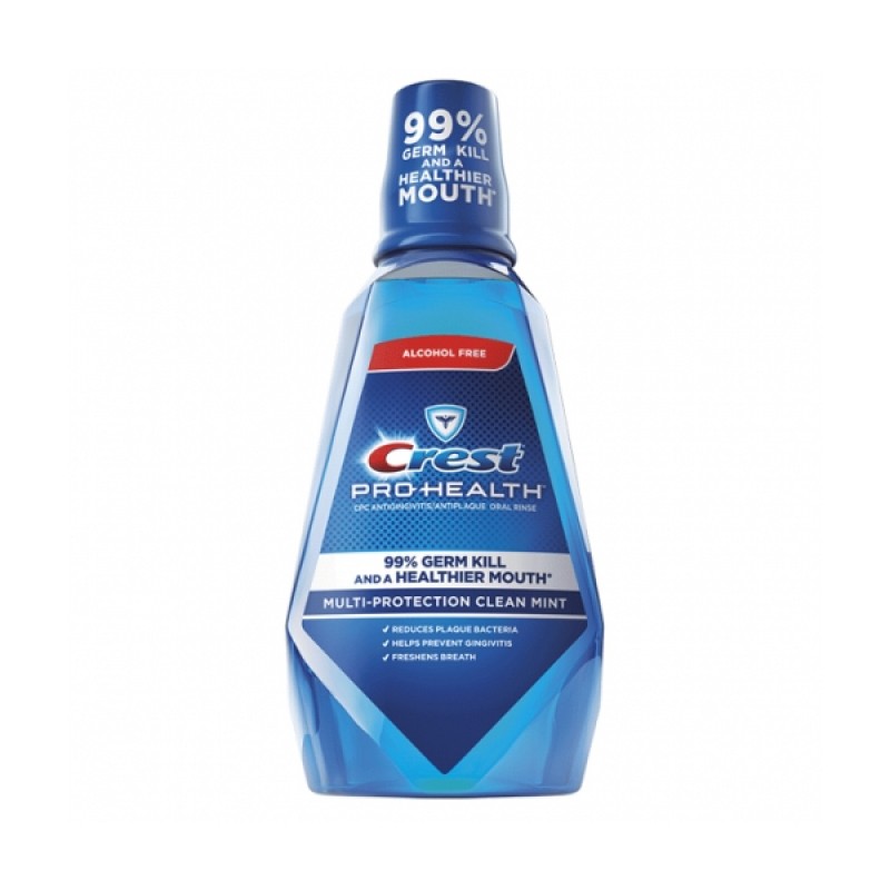 Ополаскиватель для полости рта "Мятный" Crest Pro-Health Multi Protection Clean Mint Mouthwash - неотъемлемый, при полноценном уходе за полостью рта. Ни одна зубная щетка не сможет проникнуть туда, куда проникнет данный ополаскиватель Crest, омывая внутренние частички щек, десна, небо, основание языка и сам язык. Средство не содержит спирт. Формула гарантирует мощную защиту зубов и десен от кислотосодержащих продуктов, таких как фрукты и фруктовые напитки. Ополаскиватель для рта Crest гарантированно защищает от кариеса, удаляет бактерии, тем самым удаляет неприятный запах изо рта! А при регулярном использовании ополаскиватель, укрепляет зубную эмаль. Имеет приятный мятный вкус.Способ применения Crest Pro-Health Multi Protection Clean Mint Mouthwash:Полоскать 2 раза в день после чистки зубов зубной пастой. Не глотать. После полоскания, желательно не есть и не пить в течении 20-30 минут.