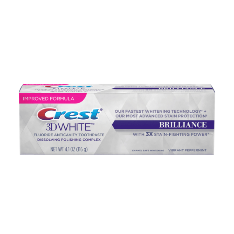 Новинка от CREST зубная паста супер отбеливание Crest 3D Brilliance придает зубам блеск и сияние. В состав пасты входят новые микро-частицы, которые бережно полируют зубную эмаль, не повреждая ее.