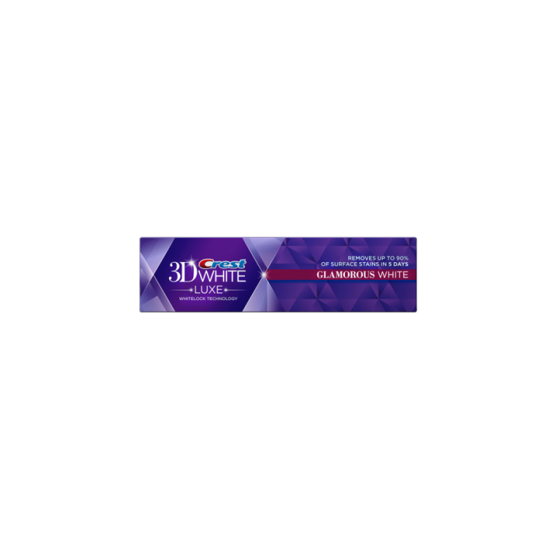 Crest 3D White Glamorous White Luxe - лидер по отбеливанию зубов и придаче блеска зубам, среди аналогичных отбеливающих зубных паст. Зубная паста Glamorous White Luxe новейшая разработка от компании "Procter&Gamble", в переводе как "белый гламур", создана для тех кто умеет быть стильным, заботиться о своем здоровье и идет в ногу со временем! Эта отбеливающая зубная паста разработана по новой уникальной технологии "Whitelock", которая не просто отбеливает зубы и удаляет поверхностные пятна, но и помогает предотвратить формирование новых пятен даже в микротрещинах Ваших зубов. Вы увидите непревзойденный результат и сияющий блеск Вашей улыбки спустя 5 дней использования этой отбеливающей зубной пасты.  Используя зубную пасту Glamorous White два раза в день, Ваша улыбка всегда будет оставаться ослепительно белой, сверкать радуя Вас и всех окружающих!