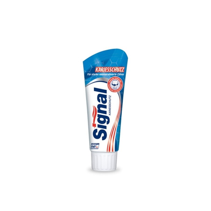 Зубная паста Signal Kariesshutz защищает зубы от кариеса, удаляет зубной налет и помогает сохранить зубы и десны здоровыми.Зубная паста содержит фторид натрия и монофторфосфат в лучших соединениях, что компенсирует вымывание из эмали фтора и кальция. Научные исследования показали, что фторид натрия является одним из самых мощных соединений фтора.  Signal Kariesschutz содержит 1450 частей на миллион фторидов.