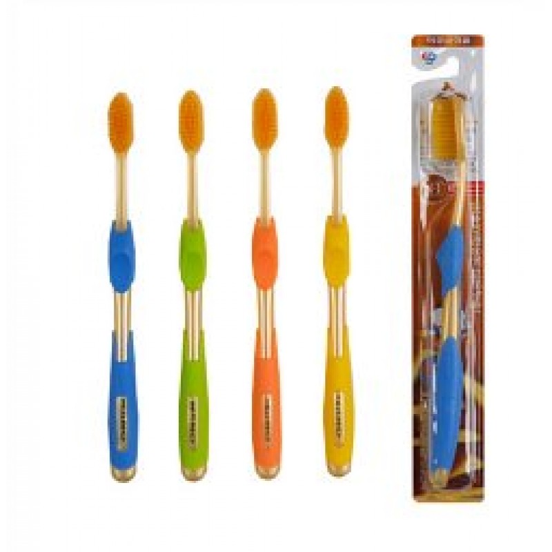 Удобная зубная щетка с густой щетинистой головкой усовершенствованной формы для более полного очищения всех зубных поверхностей. Имеет антибактериальное покрытие щетинок наночастицами драгоценных металлов.