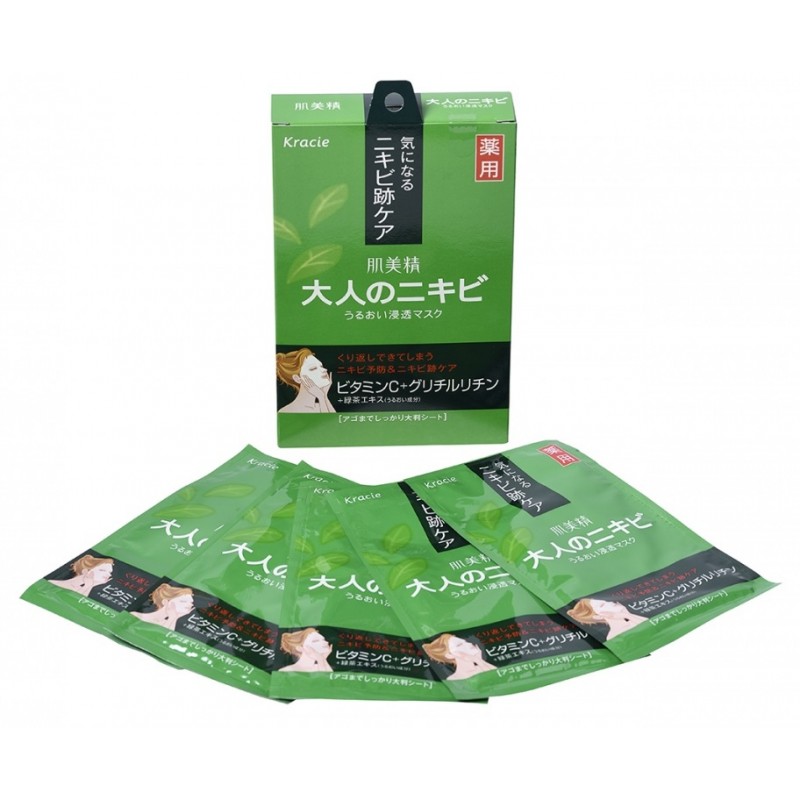 Маска для проблемной и зрелой кожи с экстрактом зеленого чая Kracie 5 штук