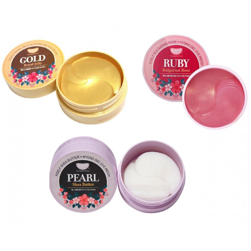 Гидрогелевые патчи являются своего рода карманчиками, заполненными водой более чем на 90%. Благодаря плотному прилеганию маски, ее активные компоненты глубоко проникают в клетки кожи и естественным образом поглощаются. В процессе использования маска постепенно становится тоньше. Применение патчей для век убирает мешки и круги под глазами, возвращает коже упругость и разглаживает морщинки. Кожа увлажняется и мгновенно подтягивается. Рекомендуется для проблемной кожи вокруг глаз с морщинами, отеками, темными кругами и «гусиными лапками». Возрастных ограничений - нет. Гидрогелевые патчи KOELF выпускают 3х видов: Жемчуг и масло ши(pearl): сделают кожу вокруг глаз здоровой и шелковистой. Обладают мощным увлажняющим эффектом, поэтому идеально подходят для тусклой и сухой кожи. Рубин и болгарская роза(ruby): обладают успокаивающим и общеукрепляющим действием, также оказывает антисептическое и противовоспалительное действие Золото и маточное молочко(gold): Золото ускоряет деление клеток кожи, что особенно актуально для зрелой и увядающей кожи. Протеины маточного молочка глубоко проникают в кожу, оказывая мгновенное увлажнение, питают кожу витаминами и микроэлементами, стимулируют обновление клеток и восстанавливают защитные функции кожи.