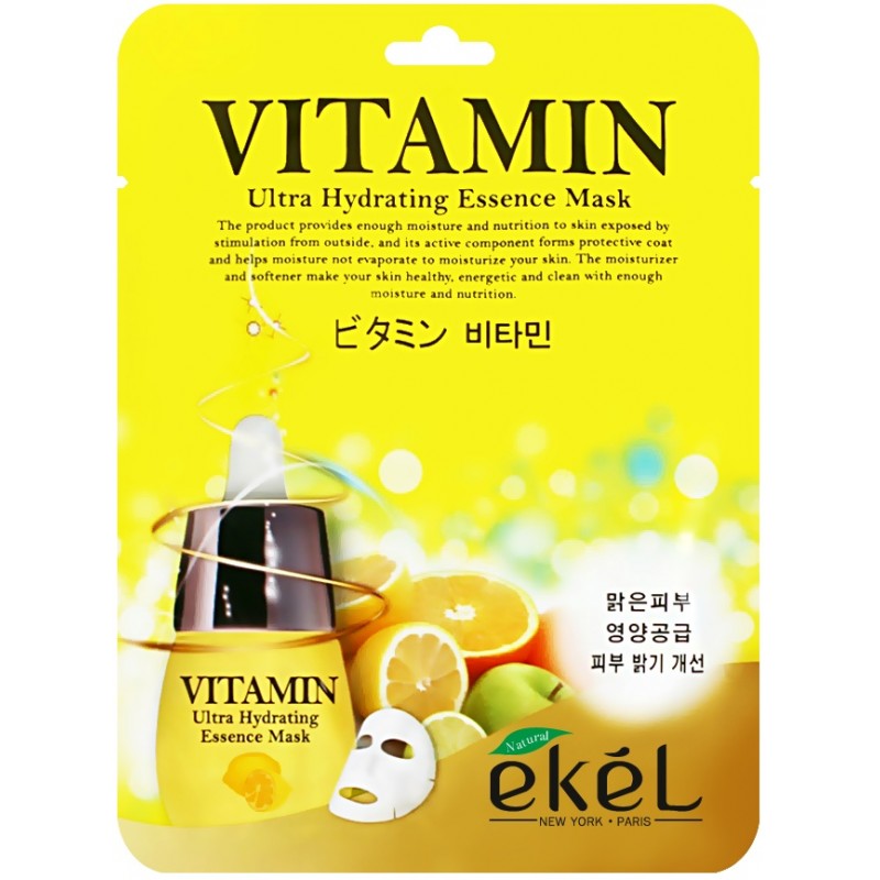 Возвращает жизненный тонус в тусклой, уставшей коже. Витаминная эссенция заряжает кожу энергией, делает тон кожи ярким и сияющим, разглаживает морщинки, делает кожу плотной и упругой. Тканевая маска содержит витамин С, ниацинамид, экстракт лимона, экстракт киви, гиалуроновую кислоту. Витамин С продлевает молодость кожи, благодаря помощи в образовании коллагеновых волокон, нейтрализует свободные радикалы. Поддерживает тонус кожи и питают ее. Витаминный комплекс восстанавливает питательный баланс, улучшает защитную гидролипидную мантию эпидермиса, нормализует водный баланс дермы, возвращает коже утраченный тонус.