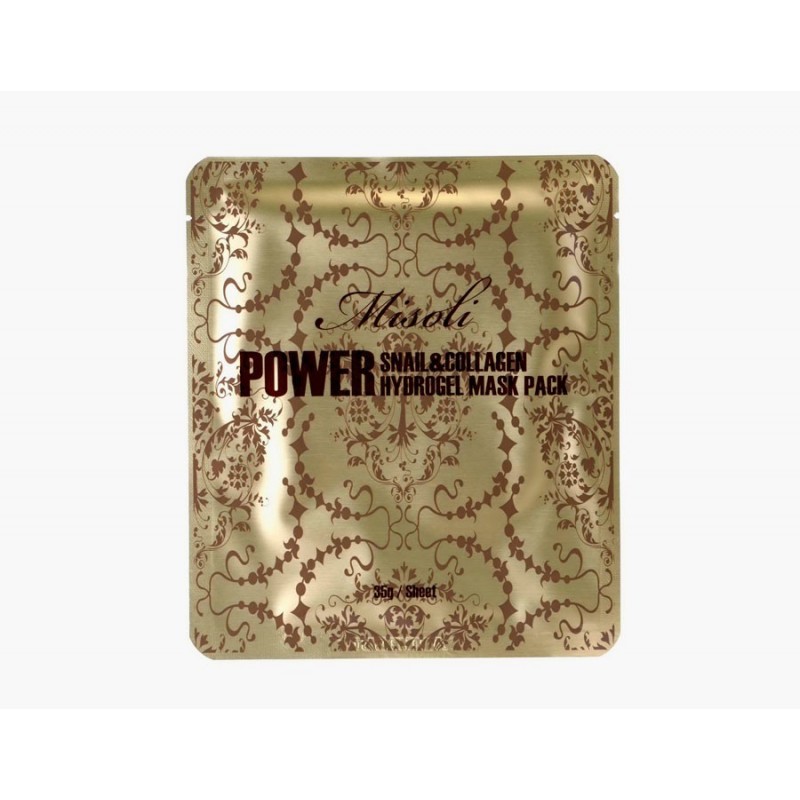 Гидрогелевая маска для лица Misoli Power Snail Collagen Hydrogel Mask Pack идеально подойдет для ухода за возрастной кожей, благодаря трем активным компонентам: муцина улитки, коллагена и золотую, которые обладают мощными антивозрастным эффектом, устраняют морщины и отеки, снижают количество пигментных пятен, а также возвращают коже эластичность и упругость. Маска содержит большое количество полезных растительных экстрактов, которые интенсивно увлажняют кожу и делают ее более гладкой и здоровой. Муцин улитки оказывает омолаживающее действие на кожу, прекрасно увлажняет, нормализует состояние кожи, защищает от преждевременного старения, а также борется с уже существующими морщинами.